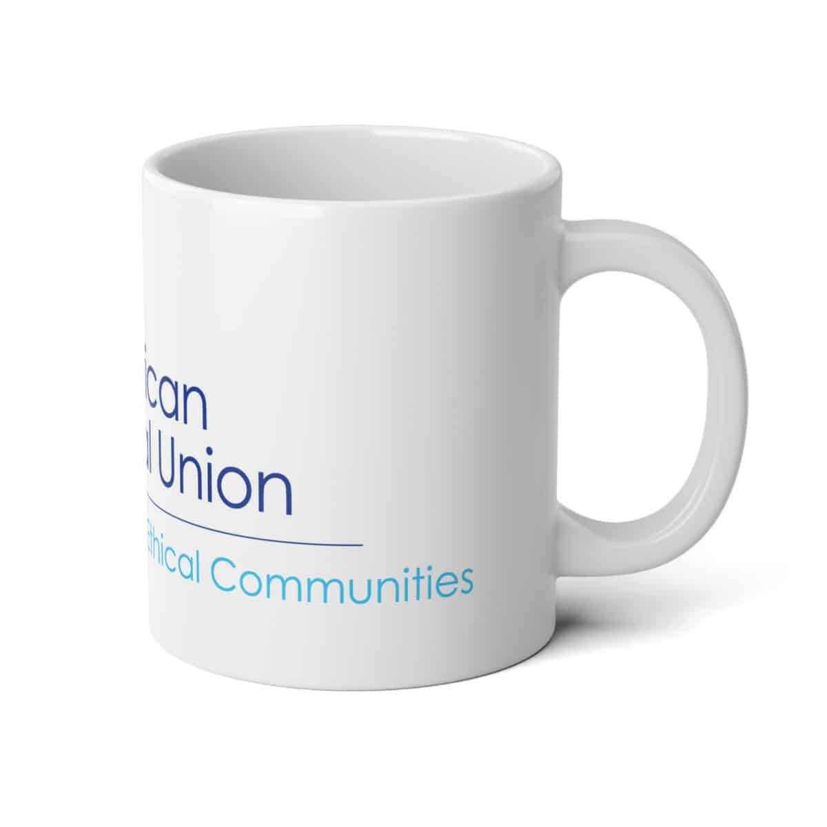 American Ethical Union – Inspiring Ethical Communities is the message on this big mug that shows your values whether holding a drink, on a desk with pens and pencils, by the window with an orchid, in the kitchen with an herb.
